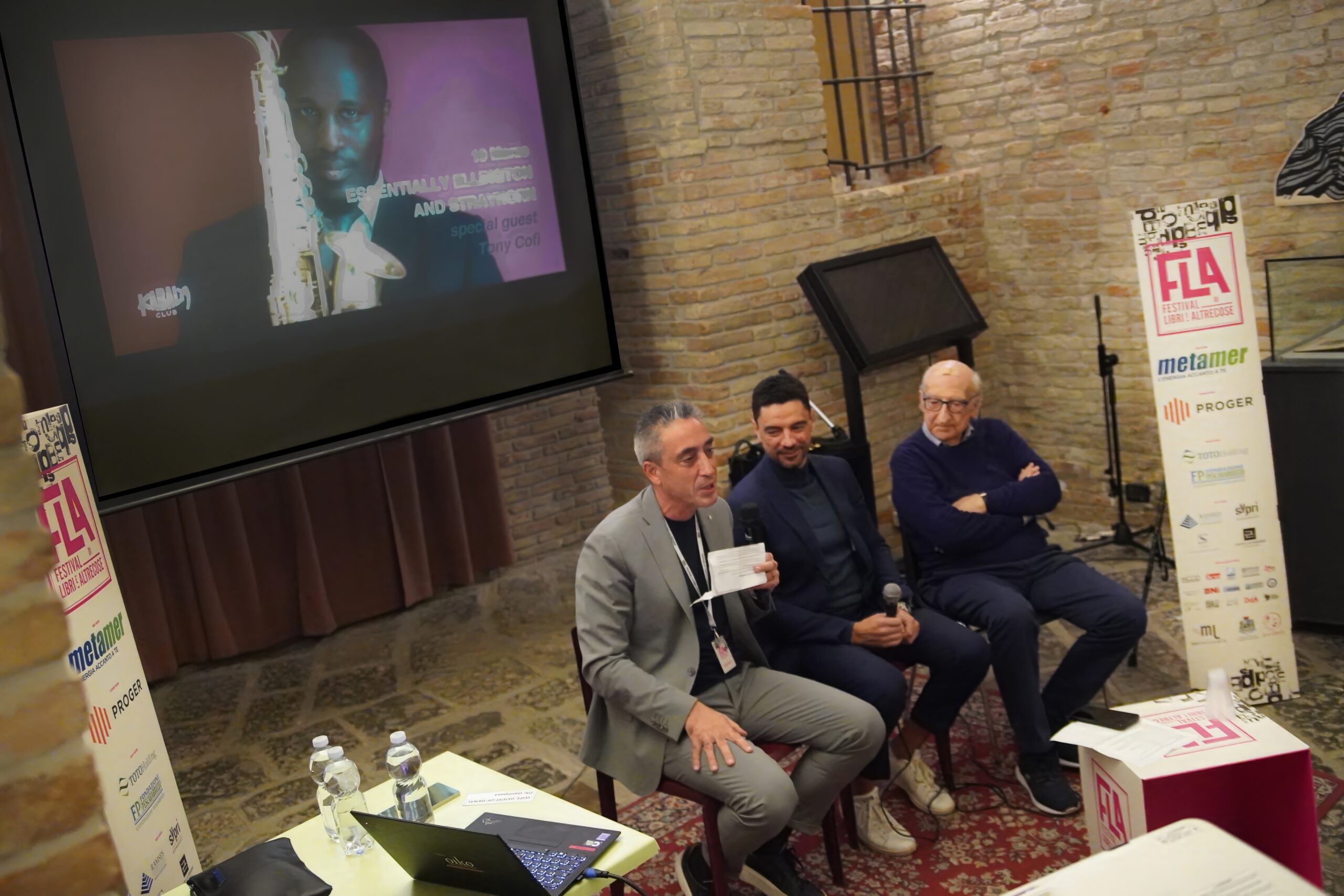 Grazie al Fla festival per l’invito a Vincenzo D’Aquino e tutto lo staff. La sala era piena oltre i posti a sedere, l’atmosfera era di festa e relax, il pubblico si è divertito a sentire i racconti di Lucio Fumo e Giancarlo Alfano, intervistati da Remo Firmani.
